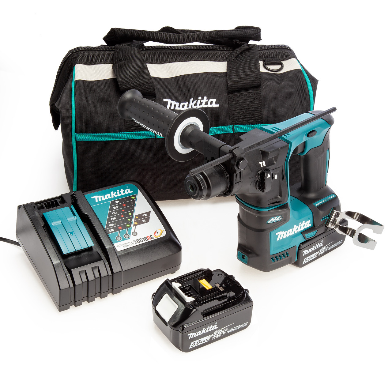 Makita DHR202 18V LXT SDS Plus Hammer, Toolbag, Charger (2 X 5.0Ah Batteries)
